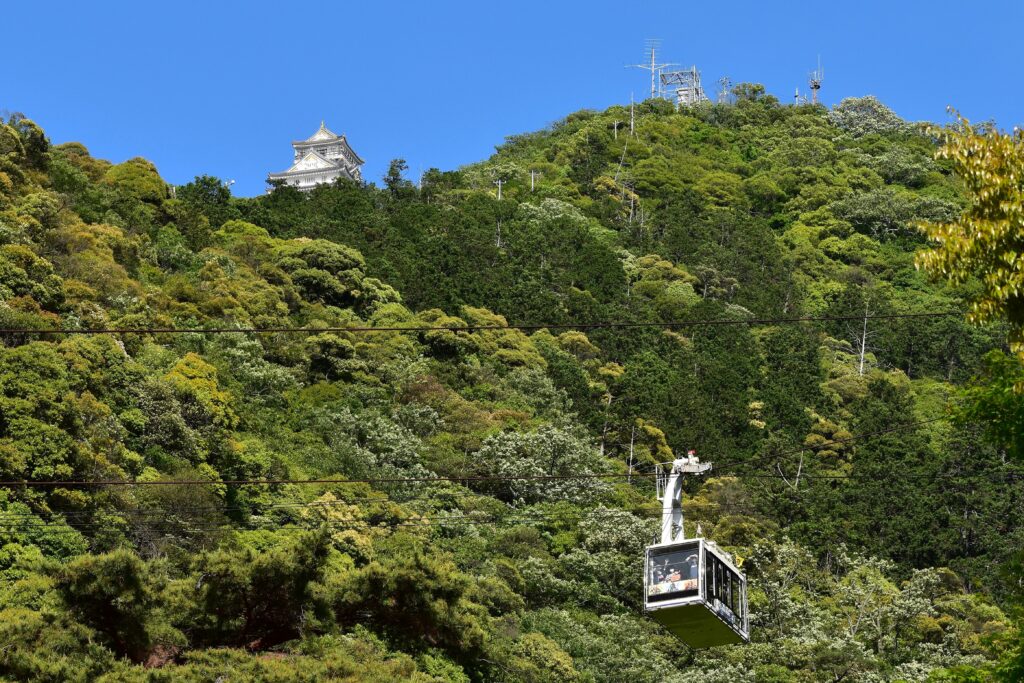 岐阜公園のシンボルとも言える岐阜城は、金華山の頂上に位置し、公園からロープウェイでアクセスできます。
